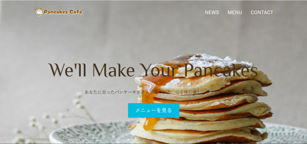 HTMLとCSSの学習で、架空のパンケーキカフェのサイトを作成いたしました。
